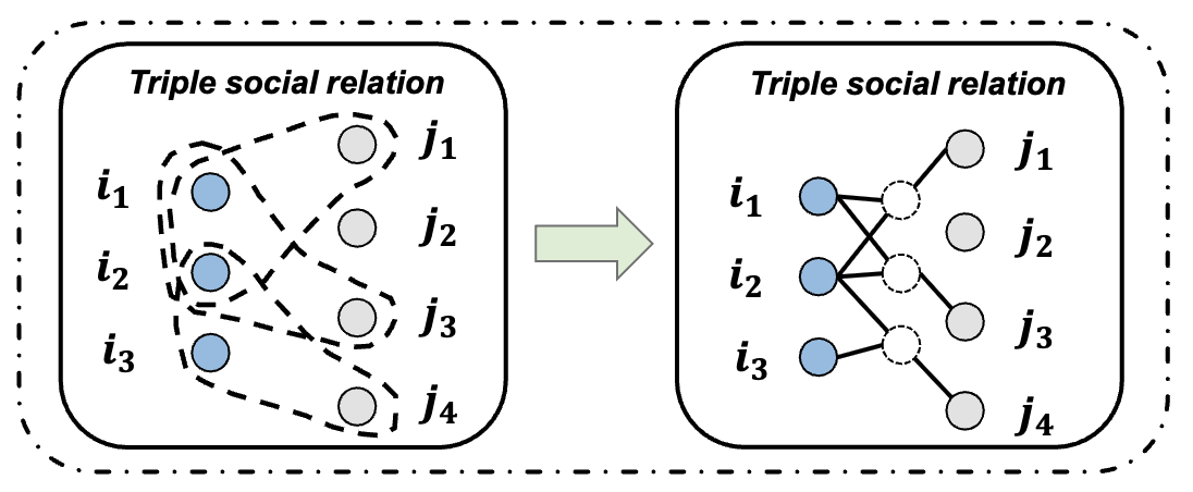Inhomogeneous Social Recommendation with Hyper-graph Convolutional Networks